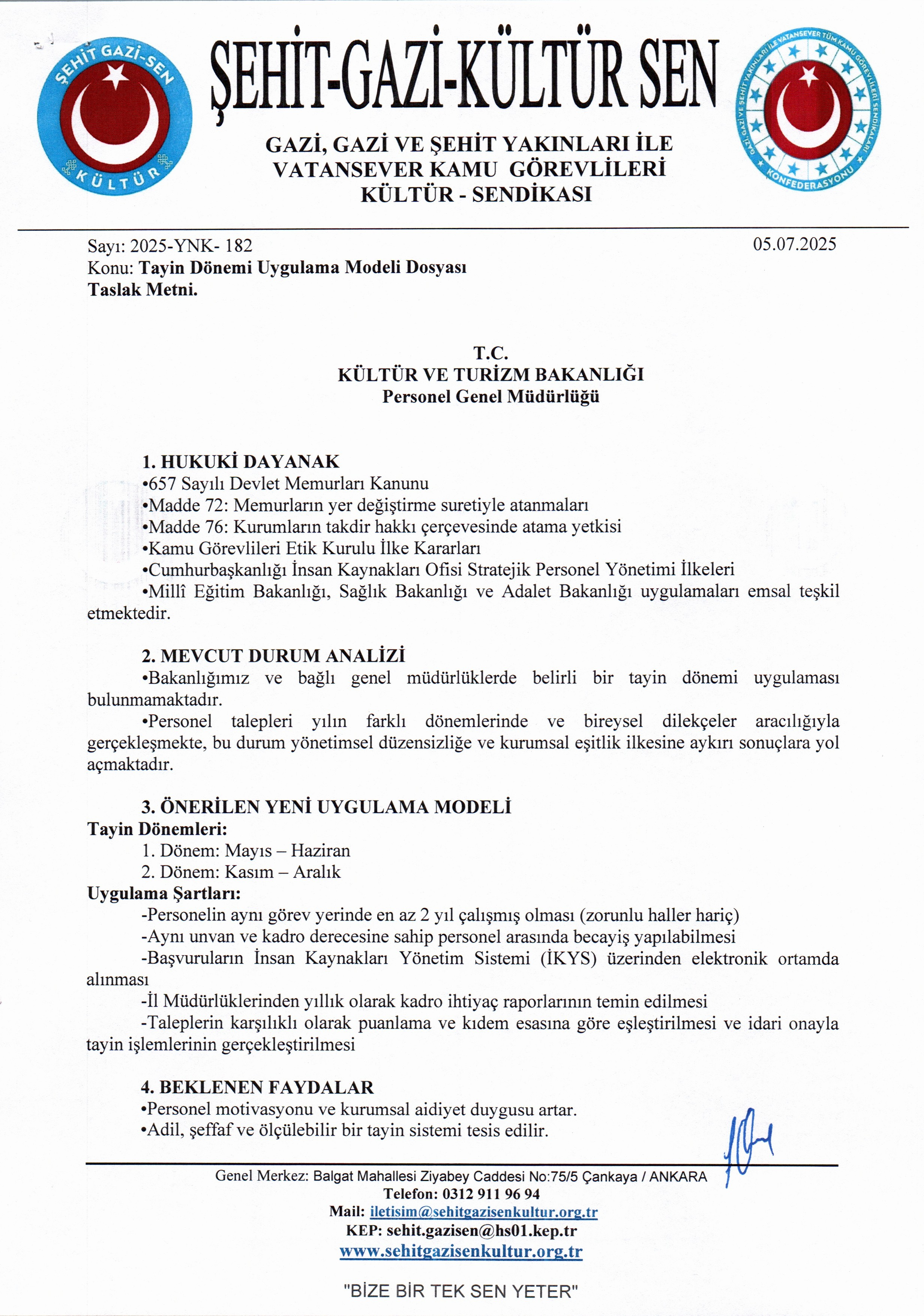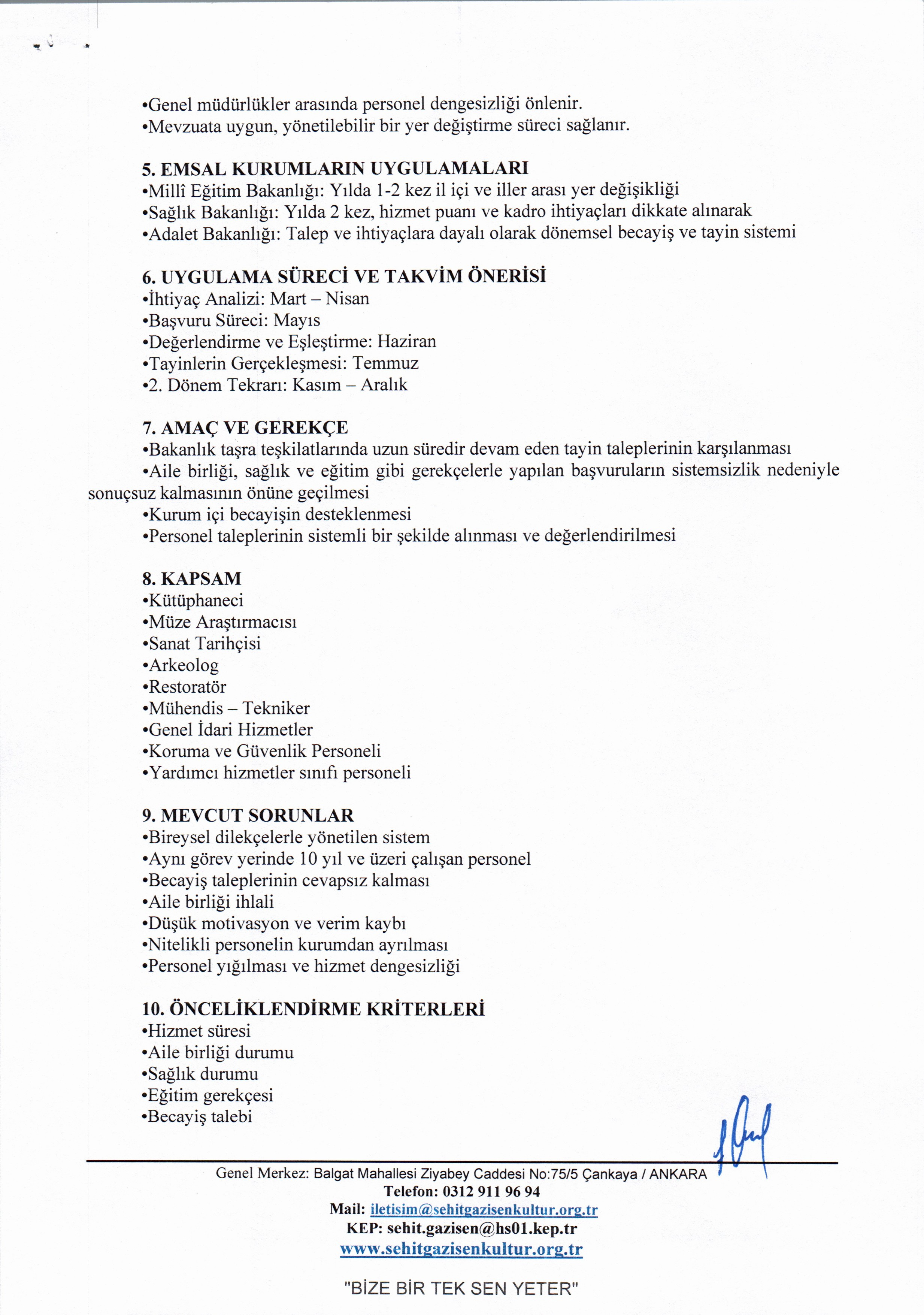 Bu doğrultuda, Kültür ve Turizm Bakanlığı bünyesinde görev yapan personelin tayin süreçlerinin adil, öngörülebilir ve kurumsal esaslara dayalı şekilde yürütülmesi amacıyla bir öneri modeli hazırlanmıştır.